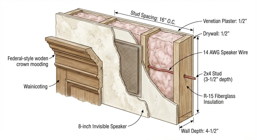 In-wall speakers require specific installation parameters to prevent plaster cracking and maintain sound quality. Standard drywall construction uses 15.9mm (⅝”) panels, but traditional plaster applications measure 19mm to 25mm over metal lath or 32mm over wood lath. This additional thickness affects speaker back-volume calculations and requires modified enclosure designs.